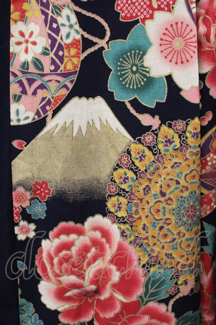 Deorart / 和柄切替着流しガウン M 黒 H-26-02-20-1037-PU-JA-KB-ZH