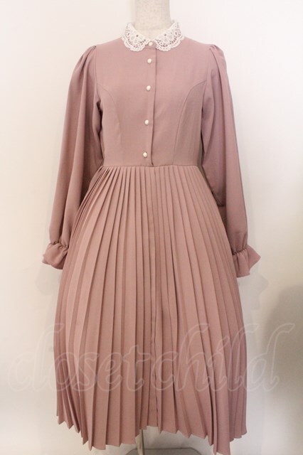 m petit by misako / AM*レースエリプリーツワンピース S ピンク O-26-02-19-1047-LO-OP-OW-OS