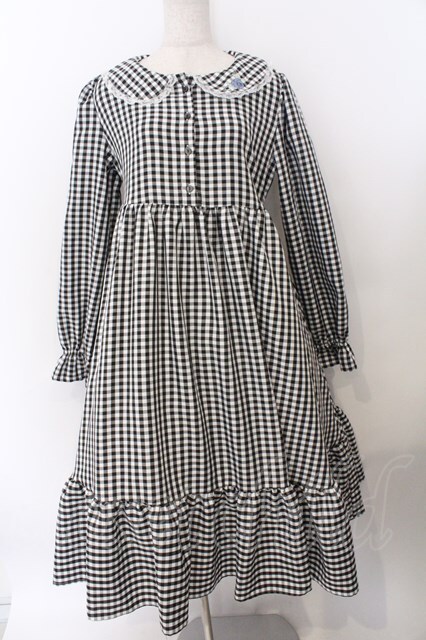 FLC / 星名桜子/ギンガムチェックワンピース L クロ O-26-02-19-1049-LO-OP-OW-ZT577
