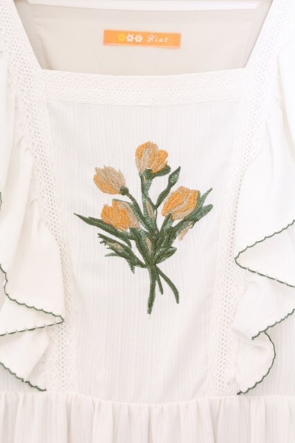 Fi.n.t / アートフラワー刺繍ショルダーフリルワンピース オフシロ O-26-02-21-076-CA-OP-IG-OS