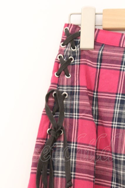 BATSU / レースアップチェックスカート M ピンク O-26-02-21-065-PU-SK-IG-OS