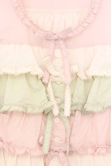 PINK HOUSE / 配色フリルブラウス ピンク×ハッカ O-26-02-21-018-LO-BL-OW-OS