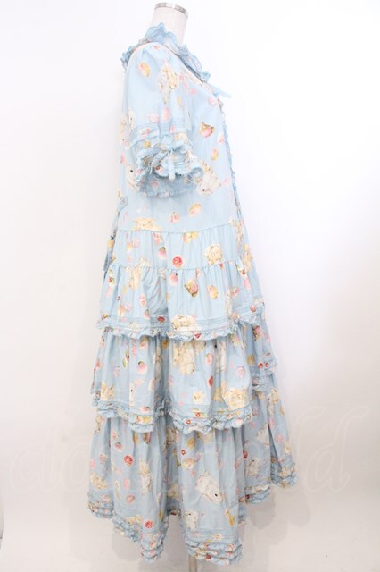 PINK HOUSE / 幸見うさぎプリントフリルワンピース ソライロ O-26-02-21-016-LO-OP-OW-OS [戻る]