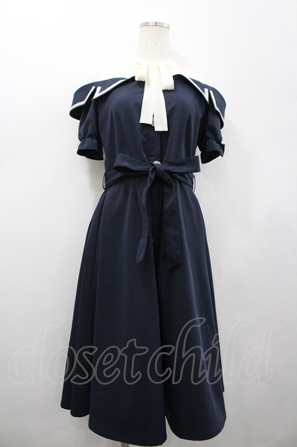 axes femme POETIQUE / ドットチュール切替オフショル半袖ワンピース M ネイビーX白 I-26-02-20-051-AX-OP-SA-ZI