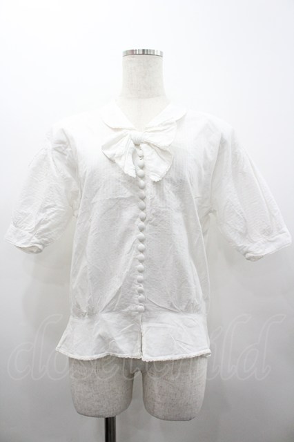 PINK HOUSE / 胸元リボンストライプ刺繍半袖ブラウス 白 I-26-02-20-019-LO-BL-SA-ZI