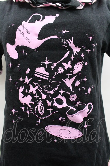 PUTUMAYO / TEAプリント半袖カットソー 黒Xピンク I-26-02-20-006-PT-TO-SA-ZI