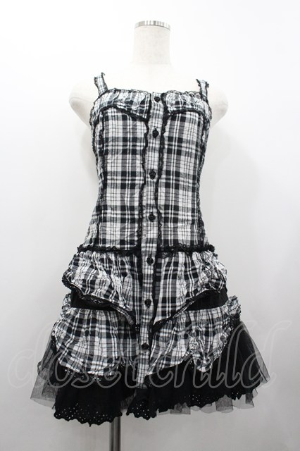 ALGONQUINS / ボレロ付キャミワンピース 黒X白チェック I-26-02-20-056-AL-OP-SA-ZI