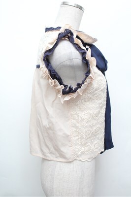 LIZ LISA / オーガンジーノースリーブブラウス オフx紺 S-26-02-20-023-LO-BL-AS-ZS