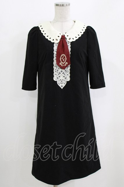 Secret Honey / ネクタイ付きワンピース Free ブラック H-26-02-22-036-CA-OP-NS-ZH