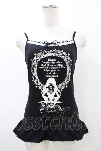 PEACE NOW / プリントフリルキャミソール M 黒 H-26-02-23-1056-PU-TO-AK-ZH