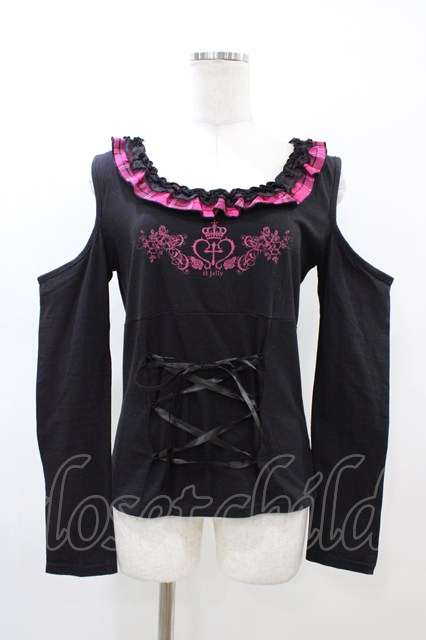 h.Jelly HONEY / レースアッププリントカットソー 黒×ピンク H-26-02-23-1057-HN-TO-AK-ZH [戻る]