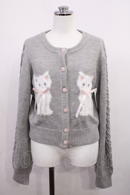 Honey Cinnamon / twins catsジャガードニットカーディガン Free グレー H-26-02-21-1030-LO-TO-NS-ZH