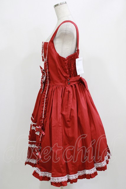 metamorphose / 【プラスサイズ】 フロントあきフリルジャンパースカート プラスサイズ えんじ H-26-02-23-008-ME-OP-NS-ZH [戻る]