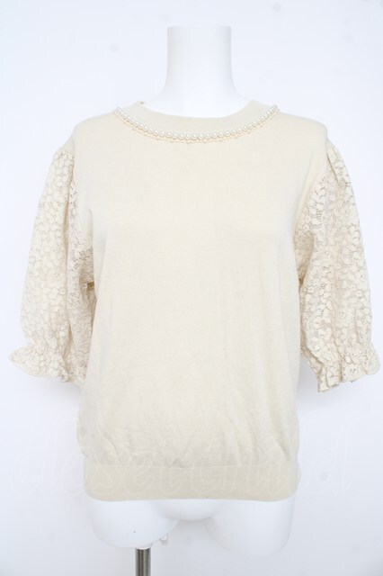 axes femme / レーススリーブ半袖ニット ベージュ Y-26-02-23-061-AX-TO-IG-ZY