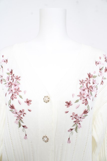 axes femme / 桜刺繍ロングニットカーデ 生成り Y-26-02-23-067-AX-TO-SZ-ZY