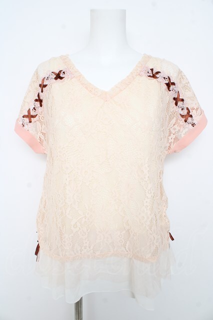 axes femme / 肩編み上げレイヤード風プルオーバー M アイボリー×ピンク Y-26-02-23-079-AX-TO-IG-ZY