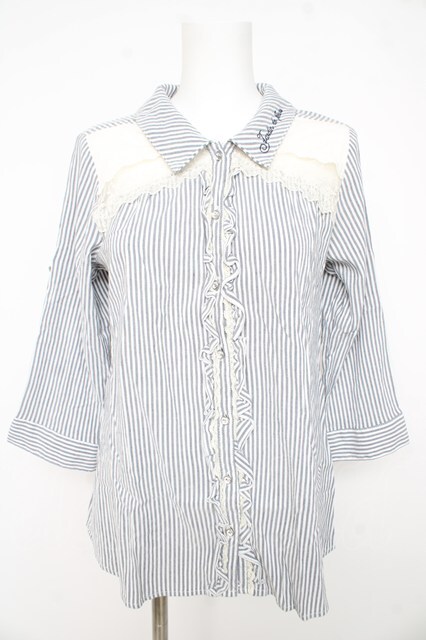 axes femme / 刺繍入り七分袖シャツ M シロ×グレー Y-26-02-23-100-AX-BL-IG-ZY [戻る]