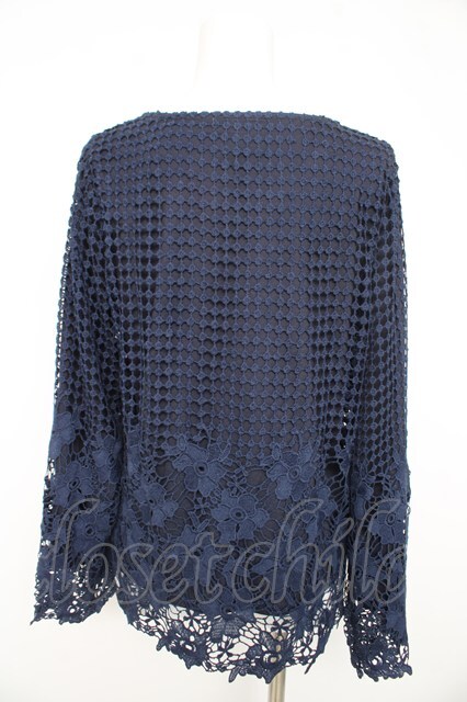 axes femme / お花レース重ねトップス M 紺 Y-26-02-23-106-AX-TO-SZ-ZY