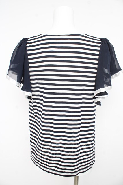 axes femme / フレア袖ボーダープルオーバー M 紺 Y-26-02-23-107-AX-TO-SZ-ZY