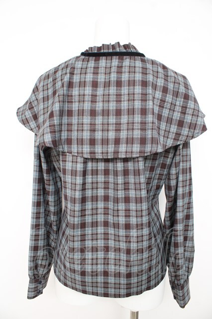 Fi.n.t / ケープ付きチェックブラウス ブルー Y-26-02-23-124-CA-BL-SZ-ZY