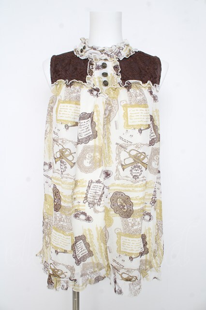 axes femme / 楽器柄ノースリトップス 生成り Y-26-02-23-146-AX-TO-SZ-ZY