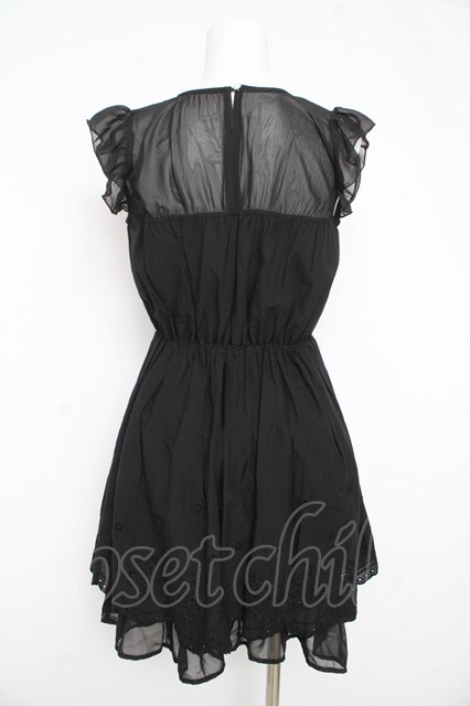 axes femme / 刺繍入りワンピース M 黒 Y-26-02-23-156-AX-OP-SZ-ZY