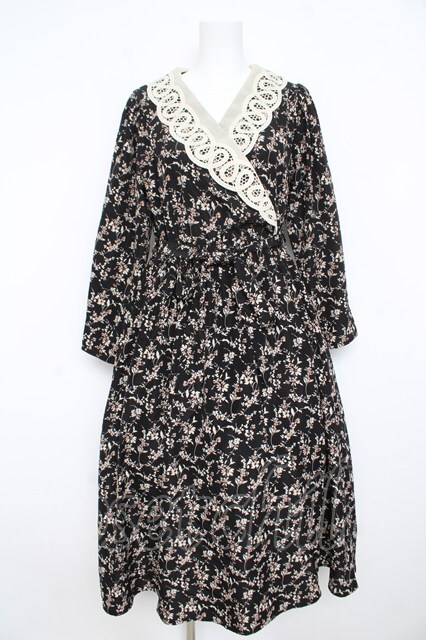 an another angelus / レース衿カシュクール花柄ワンピース 黒 Y-26-02-23-194-CA-OP-SZ-ZY