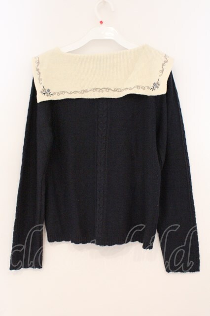 axes femme POETIQUE / 刺繍入りセーラー襟ニットプルオーバー M ネイビー×アイボリー O-26-02-24-077-AX-TO-IG-OS