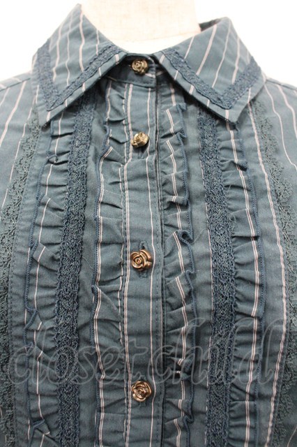 axes femme / ストライプブラウス M グリーン I-26-02-23-012-AX-BL-TE-ZI