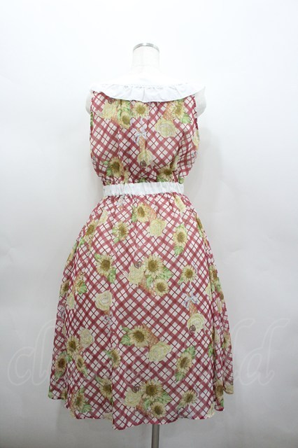 axes femme POETIQUE / ヒマワリ&アイスサマーワンピース M 赤×白 I-26-02-23-067-AX-OP-TE-ZI