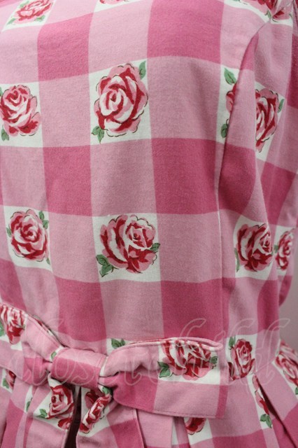 Emily Temple cute / ブロックチェックバラプリントジャンパースカート ピンク I-26-02-23-038-ET-OP-TE-ZI