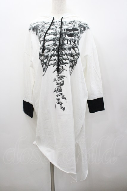 ALGONQUINS / 骨プリントパーカーワンピース 白x黒 I-26-02-23-069-AL-OP-SA-ZI
