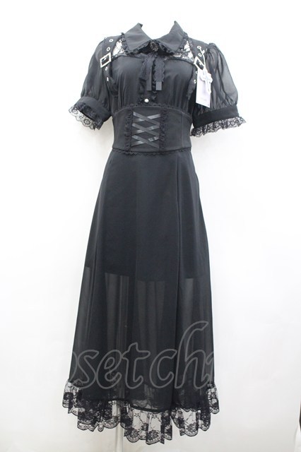 NoGenki / レース半袖ブラウスワンピース 黒 I-26-02-23-053-PU-OP-SA-ZI