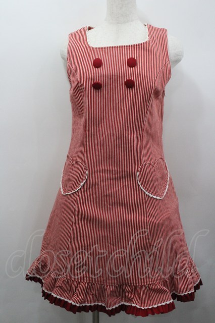Heart E / ハートポケットストライプジャンパースカート 赤×白 I-26-02-23-043-LO-OP-TE-ZI