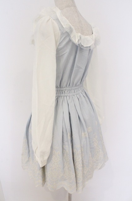 LIZ LISA / レース装飾切り替えワンピース O サックスxシロ O-26-02-24-1059-LO-OP-YM-OS