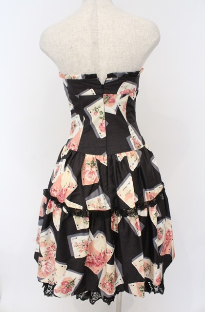 JESUS DIAMANTE / アントワーヌベアワンピ 38 トランプ薔薇柄黒 O-26-02-24-1044-JE-OP-OW-OS