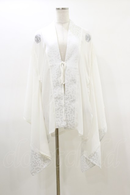 Qutie Frash / 肩メッシュ切替着物カーディガン 白 H-26-02-25-1010-QU-TO-KB-ZH