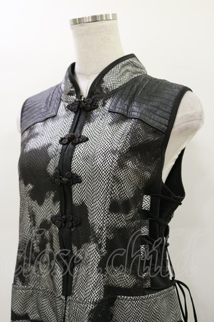 Qutie Frash / チャイナロングベスト 黒×グレー H-26-03-01-005-QU-TO-KB-ZH [戻る]
