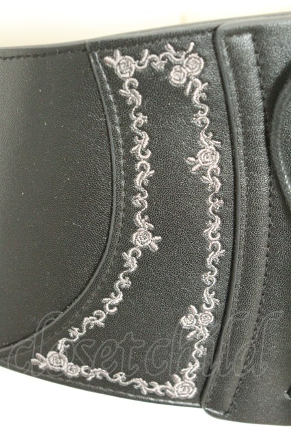 axes femme / 刺繍入りコルセットベルト クロ O-26-02-24-2048-AX-ZA-OW-OS