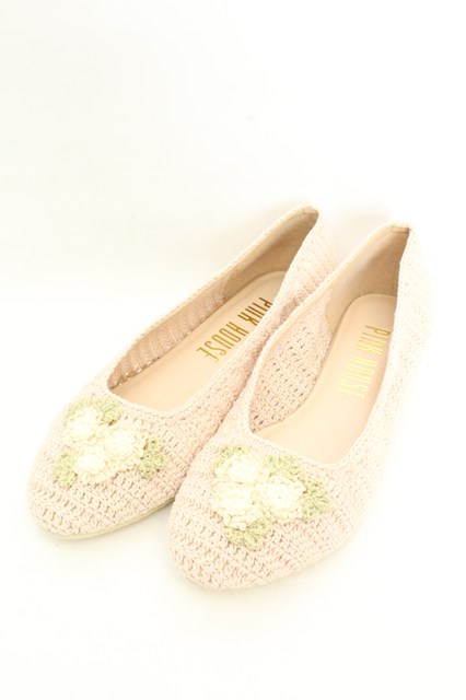 PINK HOUSE / モチーフつき編みシューズ M ピンク O-26-02-24-2078-LO-SH-IG-OS