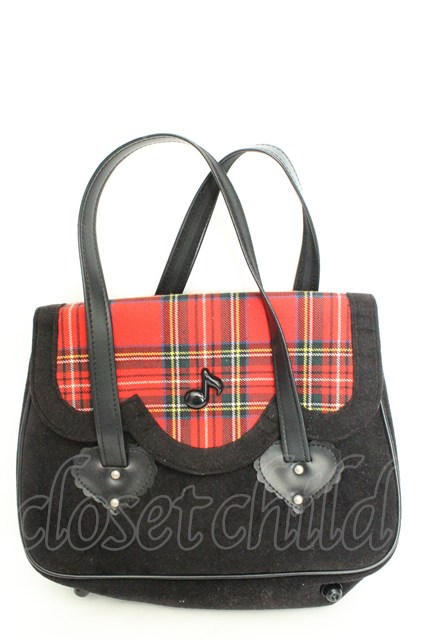 Heart E / タータン切り替えハンドバッグ クロ×アカ O-26-02-24-2098-LO-BG-IG-OS [戻る]