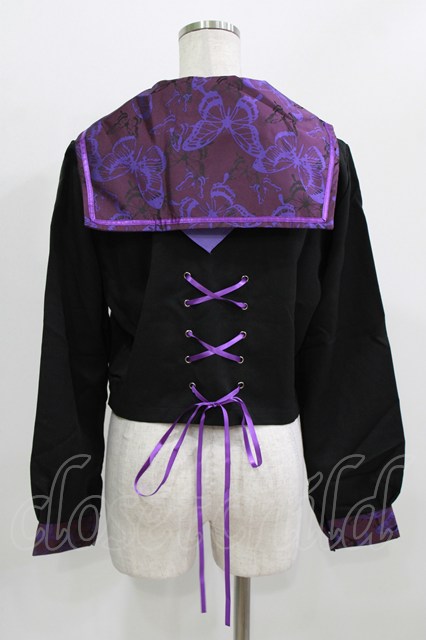 BLOOD SUPPLY(海外ブランド) / Purple Butterfly Gothic Japanese Bad Girl JK Short Sleeves tops L 黒×紫 H-26-02-24-1008-GO-TO-KB-ZH