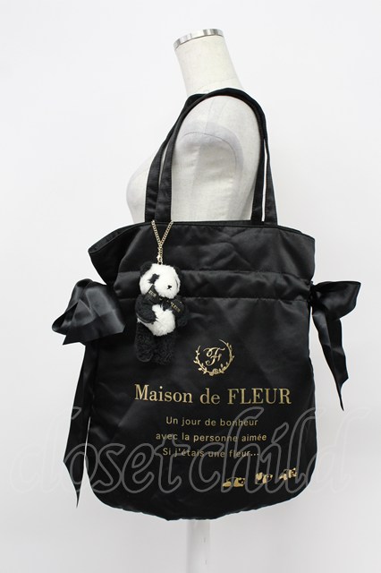 Maison de FLEUR / パンダチャーム付きダブルリボントートバッグ 黒 T-26-03-02-031-LO-BG-SA-ZT [戻る]