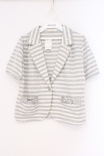 axes femme / ボーダージャケット風ボレロ M グレー O-26-02-26-001-AX-TO-IG-OS