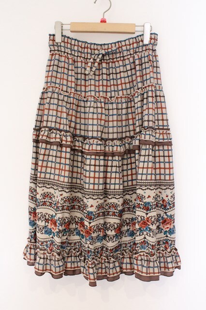 axes femme / パネル柄ロングスカート M ブラウン O-26-02-26-088-AX-SK-IG-OS