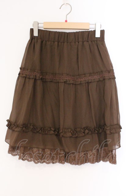 axes femme / 裾レース使いシフォンスカート ブラウン O-26-02-26-093-AX-SK-IG-OS