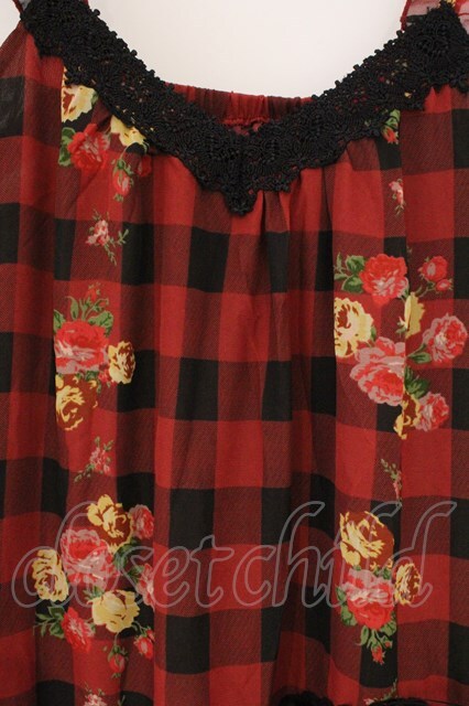 axes femme / ギンガムチェックシフォンキャミワンピース M アカ×クロ O-26-02-26-018-AX-OP-IG-OS