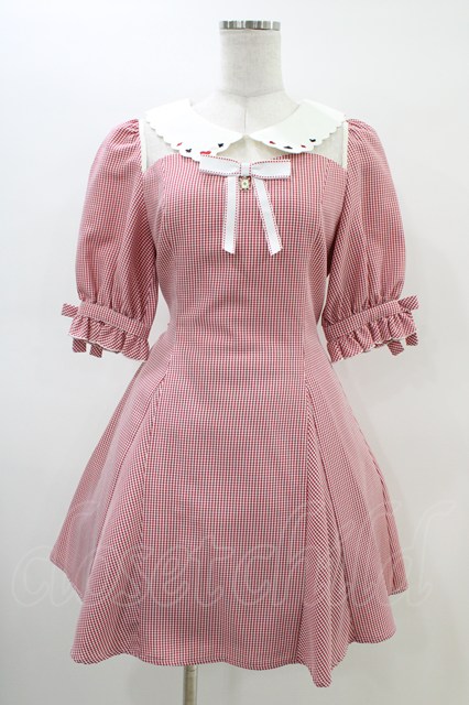 Secret Honey / トランプ刺繍ギンガムチェック半袖ワンピース Free レッド H-26-03-01-1026-CA-OP-NS-ZH