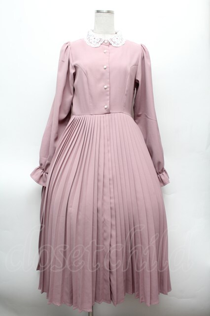 m petit by misako / AM*レースエリプリーツワンピース M ピンク S-26-02-25-042-LO-OP-TE-ZS