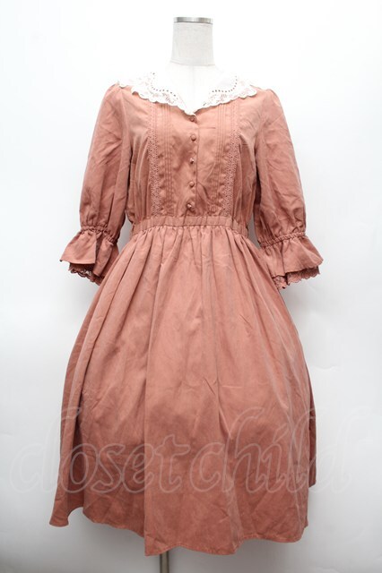 axes femme POETIQUE / レース襟スエード調ワンピース オレンジブラウン S-26-02-25-045-AX-OP-HR-ZS [戻る]